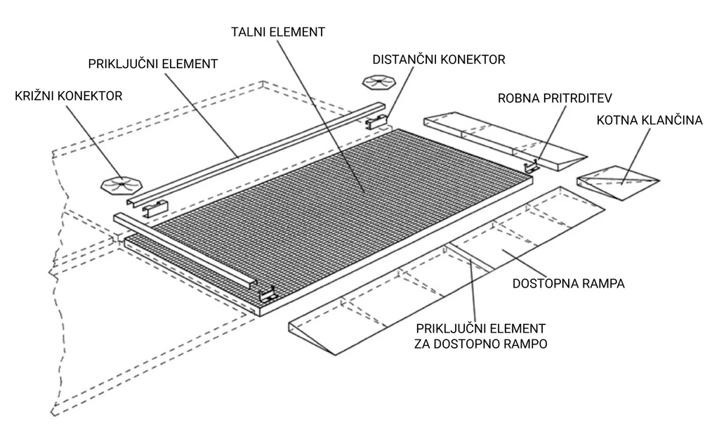 Rampe omogočajo dostop do talnih elementov z vseh strani. Zaradi tega je uporaba talnih elementov še bolj učinkovita pri vsakodnevni uporabi.