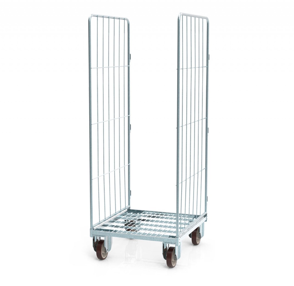 Zabojni voziček z 2 stranicama, iz pocinkane mreže, 4 kolesa dimenzije 100 mm od tega 2 z zavoro.